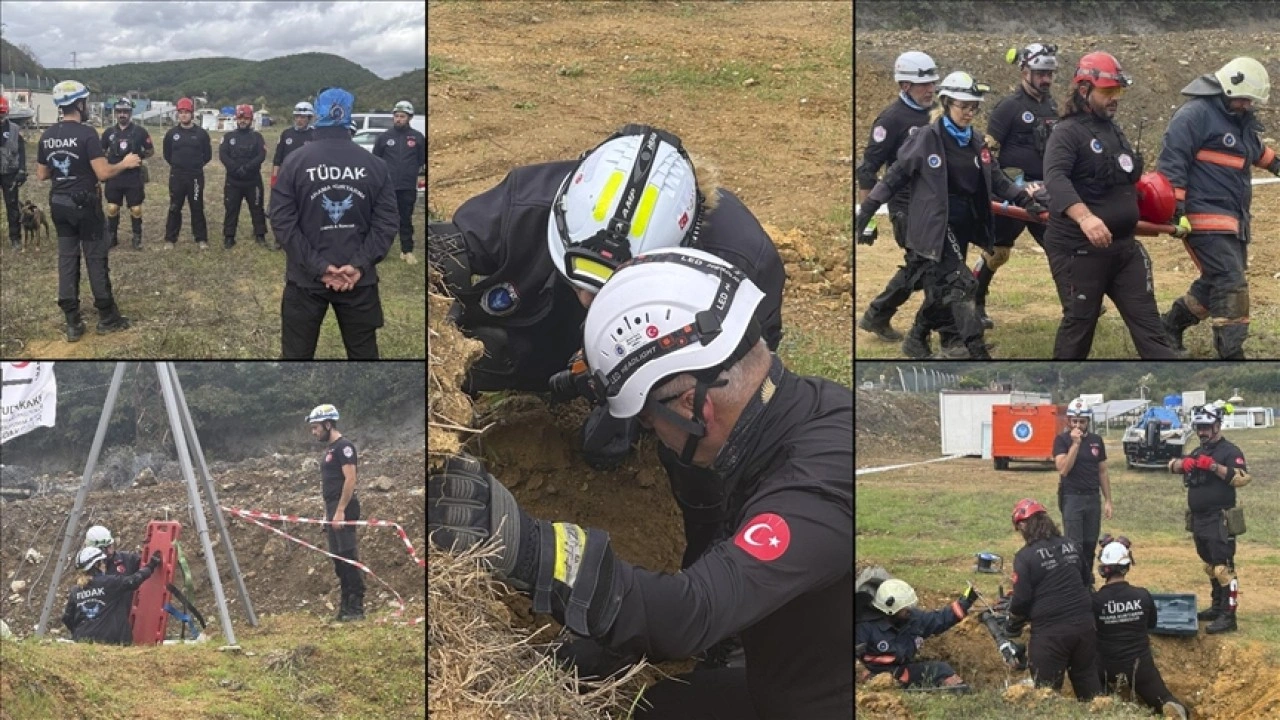 Ekipler, arama köpeği "Canbaz"ın da katıldığı, gerçeğini aratmayan bir tatbikatta, Türk mühendislerce geliştirilen termal manyetik dedektörlerle enkaz altında kalan kişiyi kurtarma sürecini gösterdi.