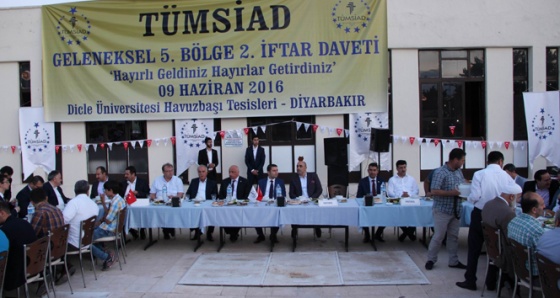 Diyarbakır’da ilk kez tam kadro olarak iftar programı düzenleyen TÜMSİAD, 5’inci bölge 2’nci iftarını kentte düzenlenen programla gerçekleştirdi. Dicle Üniversitesi Havuz Başı Sosyal Tesisleri’nde düzenlenen programa, TÜMSİAD Genel Başkanı Yaşar Doğan, il Başkanı Hüseyin Oğulmuş, Vali yardımcısı Mehmet Çağrı Özpolat, Güneydoğu Anadolu Şube Başkanları, iş adamları, ve çok sayıda davetli ile basın mensupları katıldı. Program, Kuran-ı Kerim tilavetinin okunmasıyla başladı.