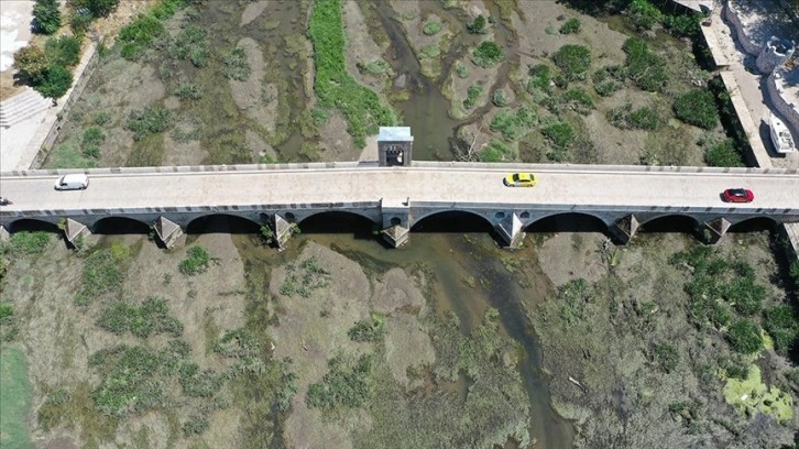 Tunca Nehri'nin debisi yaz aylarındaki kuraklık ve tarımsal sulama nedeniyle düşük seyrederken, nehir yatağında biriken çöpler kötü görüntü oluşturuyor.