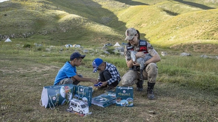 İl Jandarma Komutanlığı ekipleri de yaz mevsimini yaylalarda geçirecek olan göçer ailelerin çocuklarını bir nebze mutlu etmek için çalışma yaptı.