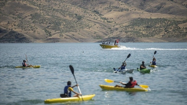Sportif faaliyetlerle heyecan dolu anlar yaşayan ziyaretçiler, daha sonra teknelerle Pertek Kalesi mevkisine kadar yaklaşık 2 kilometrelik alanda tur gerçekleştiriyor.