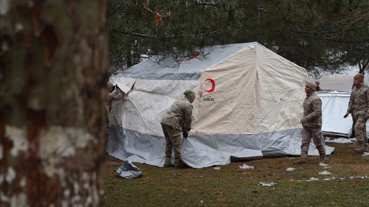 Açıklamaya göre, bölgeye sevk edilen çadırlar, Mehmetçik ve gönüllülerin desteğiyle kurulmaya başlandı.