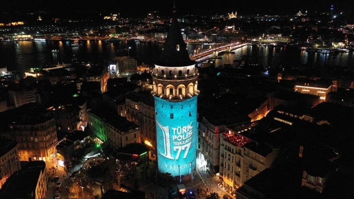 Türk Polis Teşkilatının 177. kuruluş yıl dönümü dolayısıyla Galata Kulesi üzerinde "video ve fotoğraf gösterisi" yapıldı.