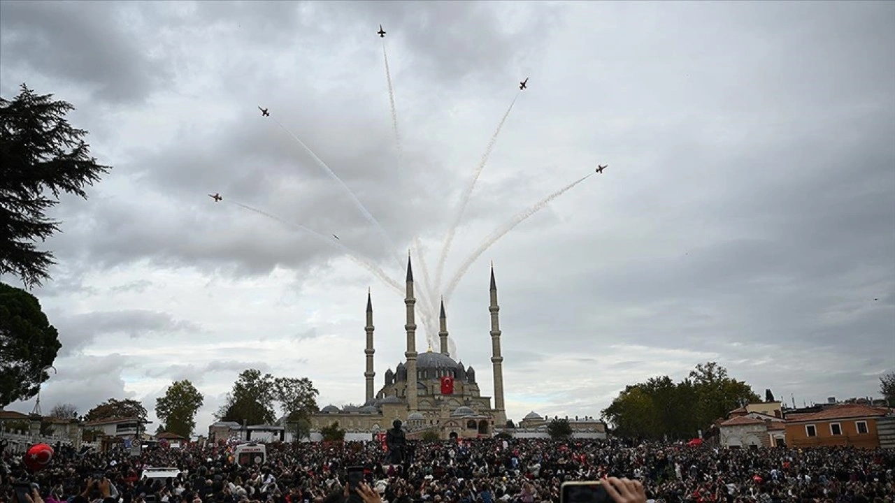 Cumhuriyetin 102. yılı kutlamaları kapsamında havalanan Türk Yıldızları, Mimar Sinan’ın ustalık eseri Selimiye Camisi'nin üzerinde uçuş yaptı.