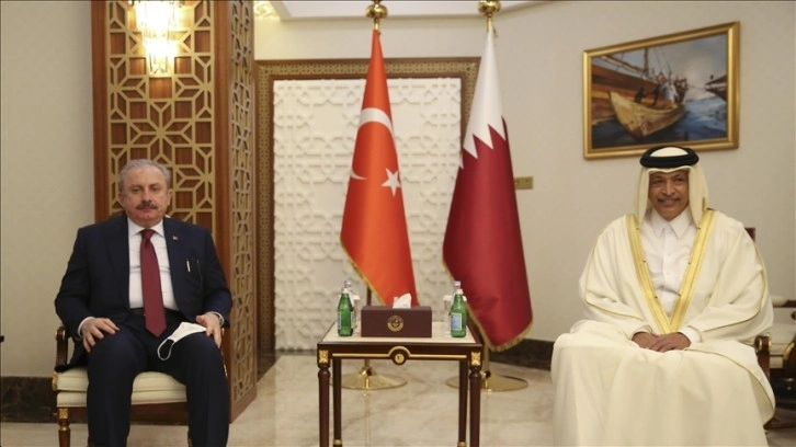 Türkiye Büyük Millet Meclisi (TBMM) Başkanı Mustafa Şentop, Doha'daki resmi temasları kapsamında Katar Şura Meclisi Başkanı Hasan bin Abdullah el-Ganim ile bir araya geldi.