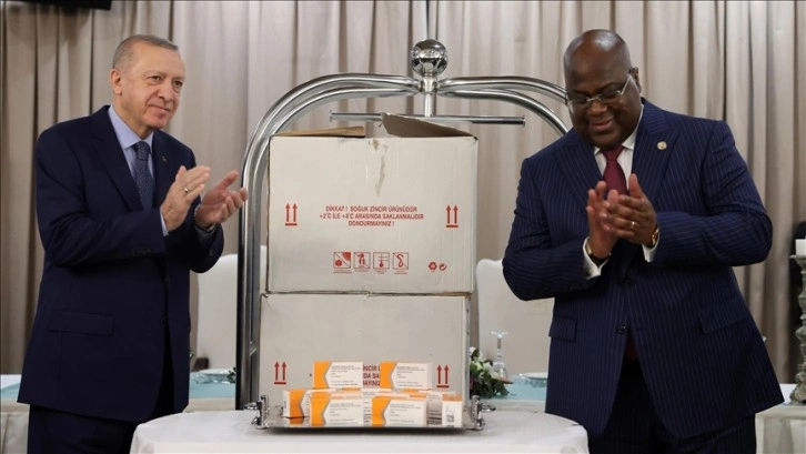 Kinşasa'da bir otelde gerçekleştirilen temsili törende, aşılar, Cumhurbaşkanı Recep Tayyip Erdoğan tarafından Kongo Demokratik Cumhuriyeti Cumhurbaşkanı Felix Tshisekedi'ye teslim edildi.