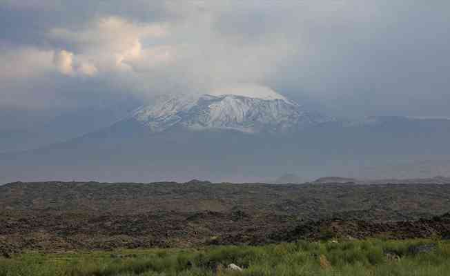 5 bin 137 metre yüksekliğiyle "Türkiye'nin çatısı" olarak anılan Ağrı Dağı'nın zirvesinden yaklaşık 3 bin 500 metresine kadar olan bölüm beyaza büründü.