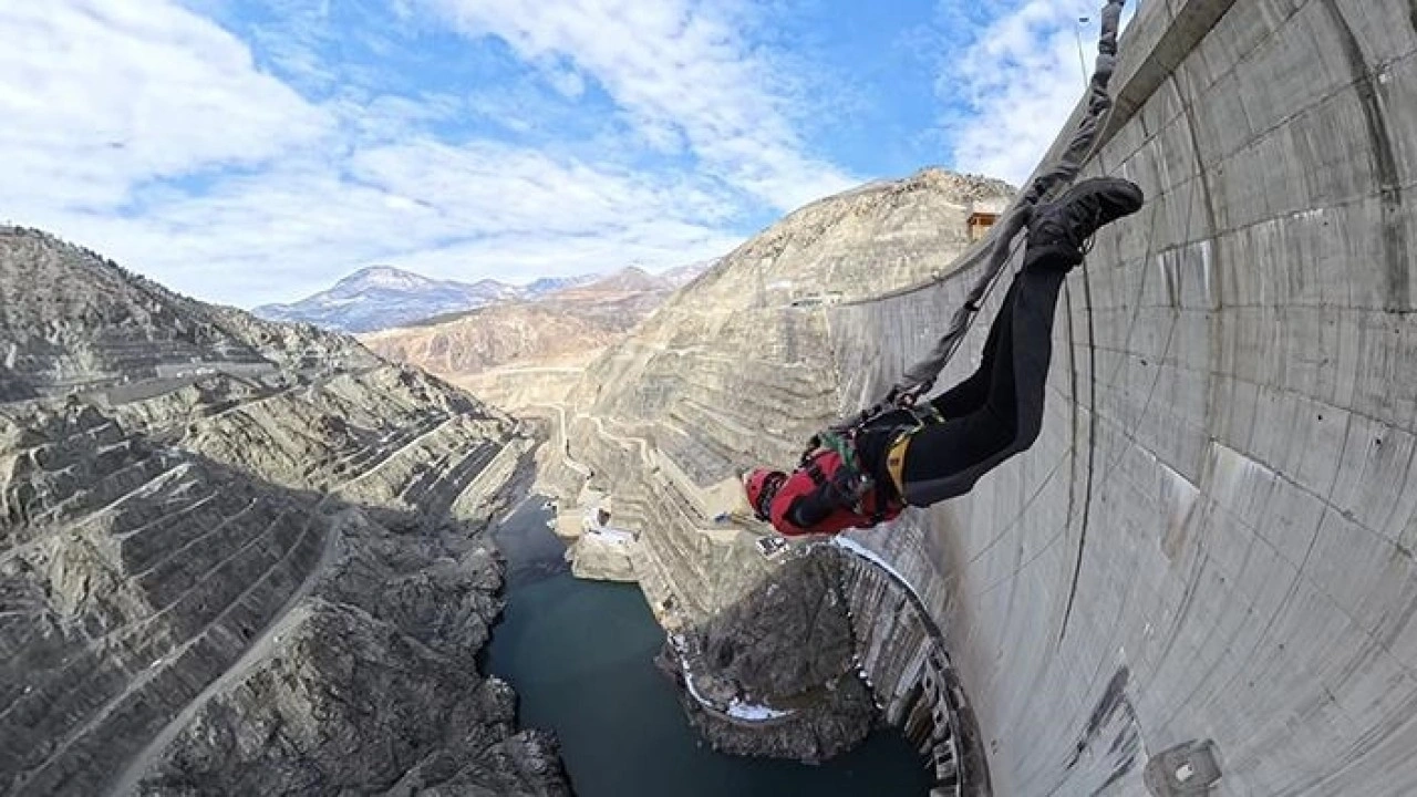Ekip, gerekli izin ve güvenlik önlemlerini aldıktan sonra yaptığı atlayışla dünya çapında mühendislik harikası yapılar arasında gösterilen Deriner Barajı'nın halatla atlama uygunluğunu test etme fırsatı yakaladı.