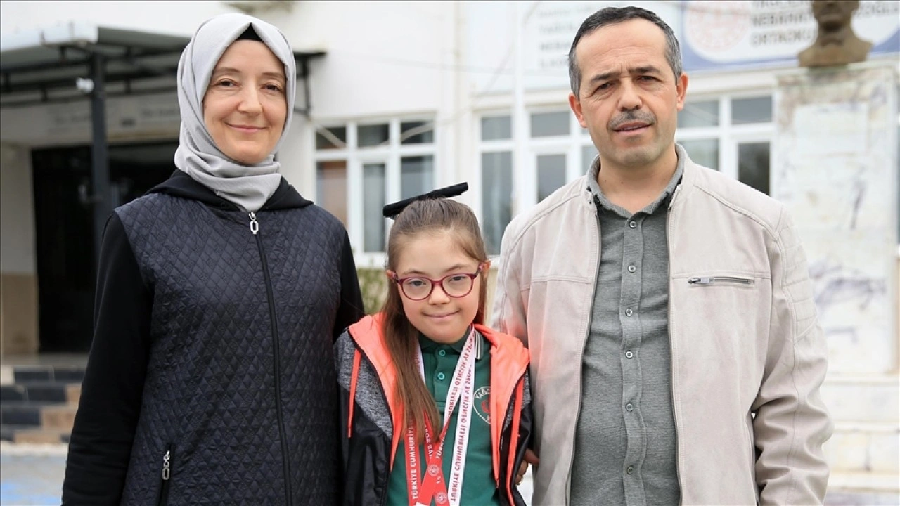Manisa'nın Yunusemre ilçesine bağlı Yağcılar Mahallesi'nde yaşayan Yakup ve Figen Alandere çiftinin 3 çocuğundan biri olan down sendromlu Büşra'nın yüzmeye ve suya merakını keşfeden ailesi, 8 ay önce onu yüzme kursuna götürdü.