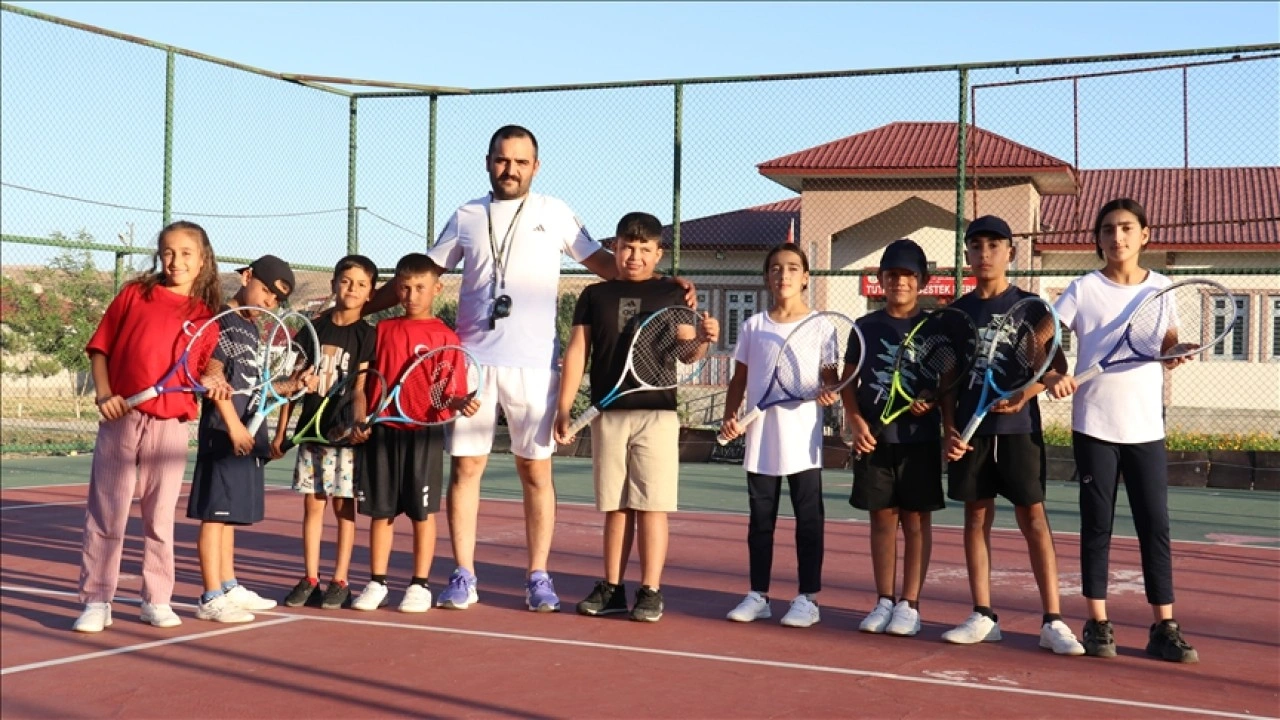 Tenis antrenörü İsmail Metin Tok, Halk Eğitimi Merkezi bünyesinde açılan kursta yeteneklerini keşfettiği çocukları spora kazandırıyor.
