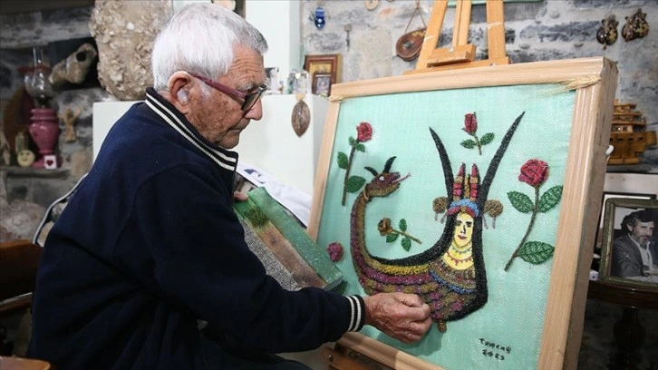 Yalıkavak Mahallesi'nde adeta bir müzeyi andıran evinde kızıyla yaşamını sürdüren Yurtsever, uzun yıllardır binlerce toplu iğneyle resim yapmasıyla tanınıyor.