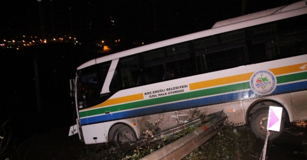 Zonguldak’ın Ereğli ilçesinde, sürücünün direksiyon hakimiyetini kaybettiği halk otobüsü bariyerlerde asılı kaldı. Otobüs yarım saatlik çalışma sonucu kurtarılırken, otobüs sürücüsü 2.12 promil alkollü çıktı.