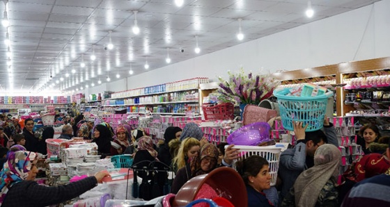Binlerce ev eşyasının satışa sunulduğu mağazada vatandaşlar içeri girmek için adete bir birleriyle yarıştı. İçeri güçlükle girenler ise yaşanan kalabalıkta alışveriş yaptı. Dışarı çıkmakta içeri girmek kadar zor oldu. Ellerinde seleler, tabureler, hediyelik eşyalarla dışarı çıkmak isteyenlere görevliler yardım etti. Mağaza sorumlusu beklemedikleri yoğun ilgiden dolayı şaşkın olduklarını kaydetti.
