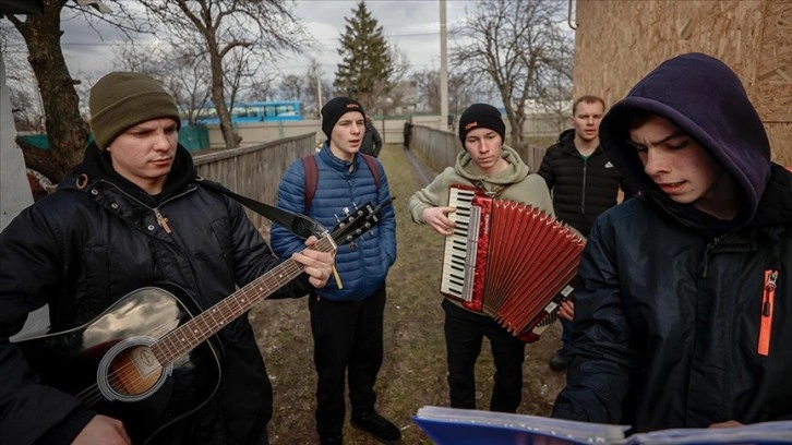 Rusya'ya karşı savaşın sürdüğü Ukrayna'da ağır çatışmaların izlerini taşıyan yerleşim yerlerinde yaşayan halkı mutlu etmek için yollara düşen kilise korosu mini konserler veriyor.