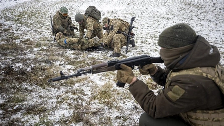 Ukrayna'nın Zaporijya bölgesinde cephe hattına yakın bir noktada kurulan askeri eğitim sahasında, Ukraynalı askerlere yoğun savaş eğitimi veriliyor.