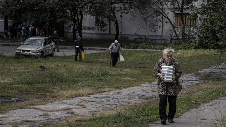 Ukraynalı gönüllüler, bu mahallede kalmaya devam edenlere her gün sıcak yemek dağıtıyor.