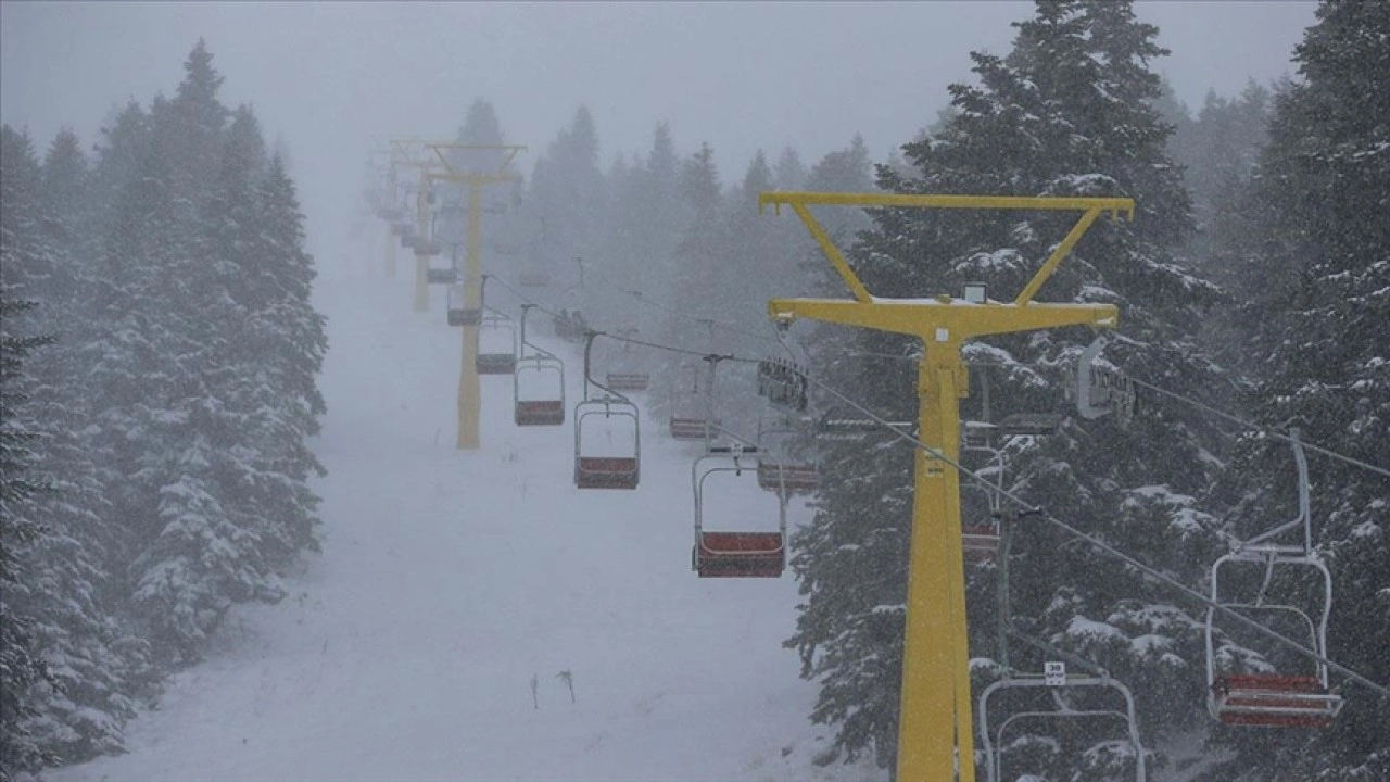 Uludağ'da hava sıcaklığının düşmesinin ardından yağışın başladığı Oteller Bölgesi'nde kayak pistleri karla kaplandı. Bazı kişiler, güzel manzaranın tadını çıkarmak için Uludağ'a çıktı.