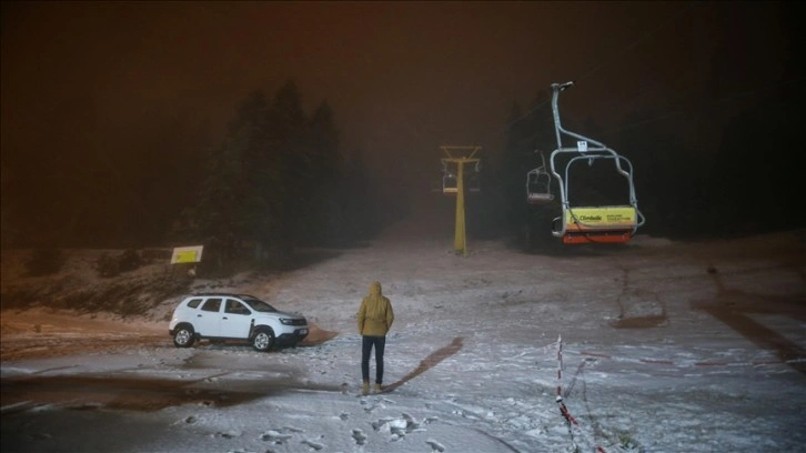 Her yıl çok sayıda yerli ve yabancı turistin ziyaret ettiği Uludağ'da yağmur, akşam yerini kara bıraktı.
