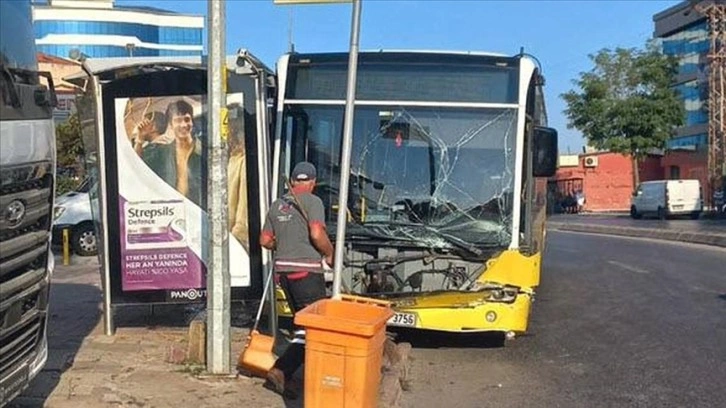 Ümraniye'de durağa çarpan İETT otobüsünde maddi hasar meydana geldi.