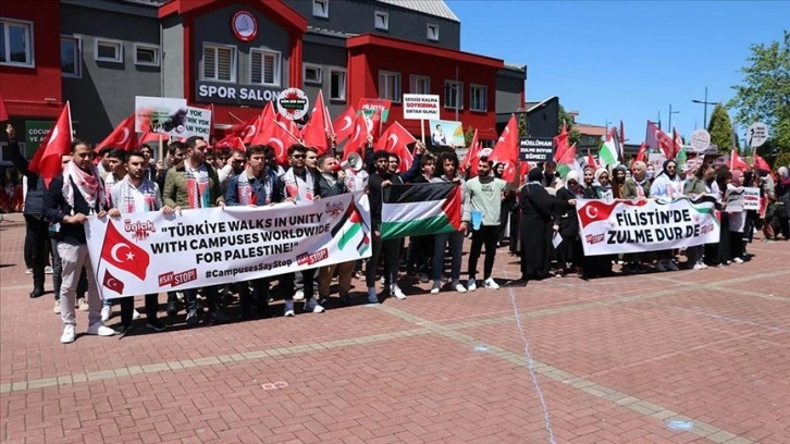 Bayburt Üniversitesi'nde öğrenciler, İsrail'in Gazze'ye yönelik saldırılarını protesto etti.