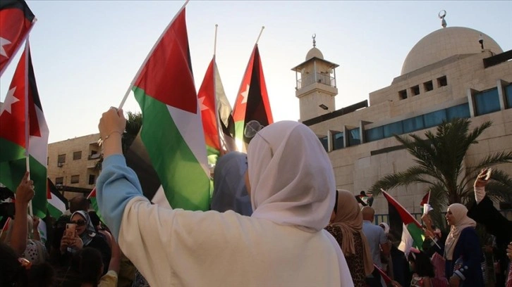 Ürdün hükümetinden resmi ve ciddi bir tavır takınmasını, İsrail Büyükelçisini ülkeden kovmasını isteyen eylemciler, Filistin halkı ve direniş gruplarına destek sloganları attı.