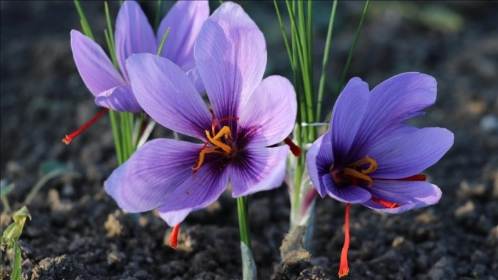 Mor ve hoş kokulu çiçekler açan, 15-30 santimetre uzunluğundaki safrandan, bu yıl ekim alanının 64 dekardan 79 dekara çıkmasıyla geçen sene 25 kilogram elde edilen ürün miktarının 35 kilograma yükselmesi bekleniyor.