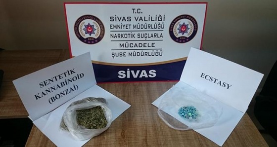 Sivas İl Emniyet Müdürlüğü Narkotik Suçlarla Mücadele Şube Müdürlüğü ekipleri İstanbul'dan Sivas'a uyuşturucu madde getirileceği bilgisi aldı. Polis ekipleri bir seyahat firmasına ait otobüsle Sivas otogarına gelen M. E. isimli şahsı yakaladı. M.E.'nin üzerinde yapılan aramada 98 Ecstasy hap ve 86 gram ağırlığında sentetik uyuşturucu maddesi ele geçirildi. Şahsın ifadesi doğrultusunda uyuşturucu maddeleri teslim almaya gelen B.Ş. isimli şüpheli de otogarda yakalandı. Uyuşturucu madde imal ve ticareti suçundan işlem yapılan şüpheliler sevk edildikleri adli makamlarca tutuklandı.