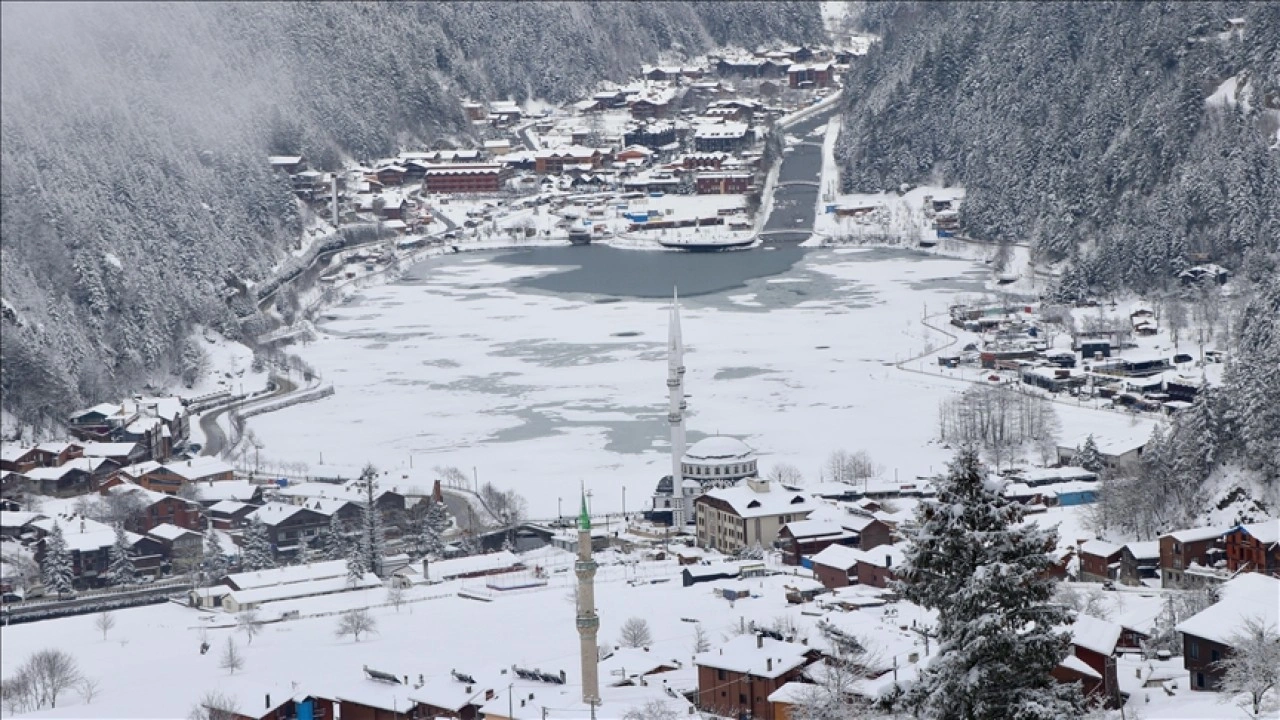 Bölgede yaşanan soğuk hava ve kar yağışı, dünyaca ünlü turizm merkezi Uzungöl'de de etkisini gösterdi.