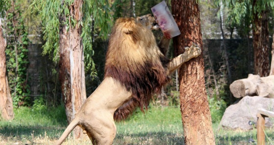 Hava sıcaklıklarının giderek artması, yalnızca insanları değil hayvanları da olumsuz yönde etkiliyor. İzmir Doğal Yaşam Parkı hayvanları ise bu konuda hayli şanslı. Hayvanlar, özenle hazırlanmış dondurulmuş yiyeceklerle hem serinliyor, hem de karınlarını doyuruyorlar.
