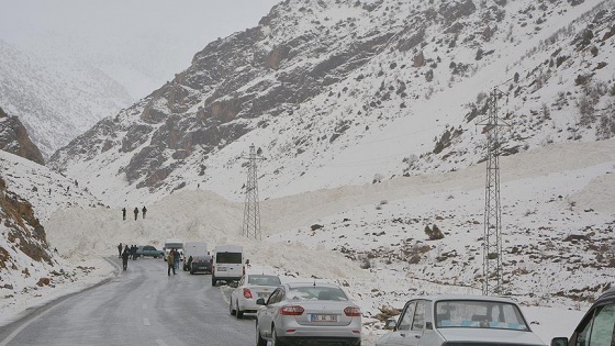 Trafiğe kapanan yolda çok sayıda araç mahsur kalırken Karayolları 111. Şube Şefliği ekipleri, çığın meydana geldiği bölgede çalışma başlattı.