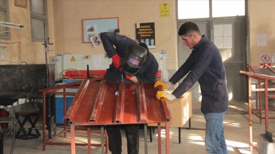 Kaymakam ve Belediye Başkan Vekili Nuri Mehmetbeyoğlu'nun talimatıyla tahta, demir ve boya yardımında bulunulan öğrenciler, atölyelerde köpekler için 10 kulübe hazırladı.