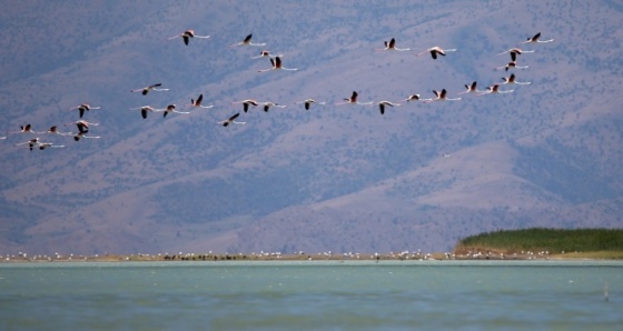 Her yıl İran'ın Urumiye Gölü'nden gelerek Van Gölü havzasında bir süre konakladıktan sonra Afrika ülkelerine göç eden flamingolar, bu yıl Edremit ilçesinde Van Gölü kıyısında bulunan Dilkaya Havzası'nı mesken tuttu. Göl çevresindeki sulak alanda beslenen flamingoların havadan çekilen görüntüleri, izleyenleri hayran bırakıyor. Drone ile çekilen görüntülerde adeta görsel şov yapan flamingolar ziyaretçilerini bekliyor.