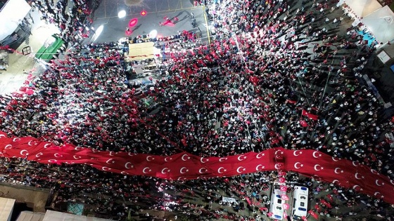 "Ellerini ovuşturdular, ihtilal olsun istediler. Alanlarımız kapatılmak istendi. Dertleri, uzun yıllar uğraştıkları halde yok edemedikleri Anadolu'nun sahibi bu milleti, arkadan vurmaktı. Yiğitçe karşımıza geçip bir şey yapamadıkları için içimizden hainler bulmuşlardı. Kendilerine uygun insanlar seçmişlerdi. Polis ve sivil halkın içinden de bunu yaptılar. Kandırdılar, din, iman uğruna hedef göstererek bu millete, Anadolu topraklarını, birçok kez şehit topraklarıyla yıkamış milleti vurmak istediler. Bu milletin içindeki cevheri bilmiyorlar. İçimizden kendilerine uygun insan bulabilirler ama geri kalanlar asla kalkışmalara müsaade etmez. Yüreğinden imanı azalmayan bu millet, o akşam Türkiye'nin bütün alanlarında ayağa kalktı. Bir kere daha dirilişi gösterdik. Onlar bir kere daha milletin ne olduğunu anladılar."