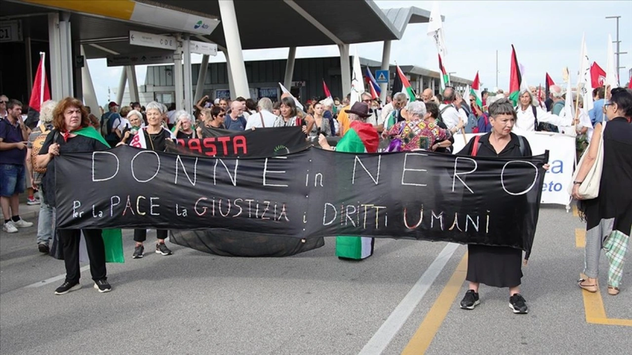 İsrail saldırısı altında bulunan Gazze'deki durumu ve Filistinlilerin yaşadığı sıkıntıları Venedik Film Festivali çerçevesinde gündeme getirmek isteyen binlerce kişi, festivalin yapıldığı Lido Adası'ndaki Santa Elisabetta Meydanı’nda bir araya geldi. Yaklaşık 700 kişi de Filistin bayraklarıyla donattıkları küçük bir vapurla Lido Adası'na ulaştı.