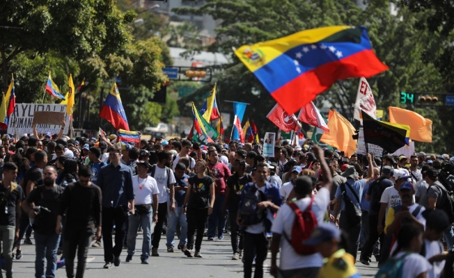 Venezuela’daki siyasi kriz ülkeyi ikiye böldü. Nicolas Maduro hükümeti ile kendini geçici devlet başkanı ilan eden Ulusal Meclis Başkanı Juan Guaido yandaşları bugün başkent Karakas’ın farklı noktalarında meydanlara indi. Dış baskılara tepki göstermek üzere başkentteki Morelos Meydanı’nda toplanan Maduro destekçileri, Devlet Başkanlığı Sarayı Miraflores’e yürüyecek.