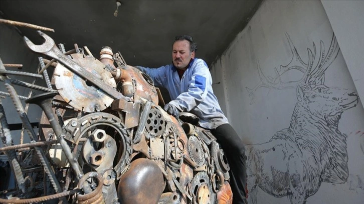 Geçen yıl metal geri dönüşüm atıklarından ve yemek kaşıklarından hazırladığı şahmeran (başı insan, gövdesi yılan biçiminde olduğuna inanılan efsanevi yaratık) heykeli ile çevre kirliliğine dikkati çektiğini anlatan Çakmak, yeni eserinin ise atıklarla hazırladığı geyik heykeli olduğunu belirtti.