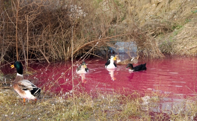 Kırmızı su ile dolan alanda yüzen ördekler de kırmızı renge boyandılar. Kırmızıya boyanan ördekleri ve kırmızı suyu görenler de şaşkınlıklarını gizleyemediler.