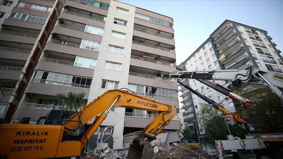 İzmir'deki depremde en fazla hasar gören binalardan Yılmaz Erbek Apartmanı'nda çökme riski nedeniyle başlatılan kontrollü yıkım çalışmaları dün akşam tamamlanmıştı.