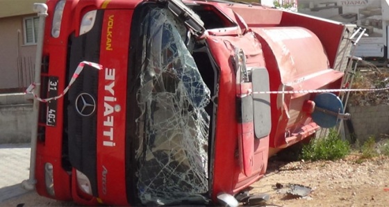 Hatay’ın Antakya ilçesinde, yangına giden Hatay Büyükşehir Belediyesi’ne ait itfaiye aracı kontrolden çıkarak devrildi. Kazada sürücü yaralandı.