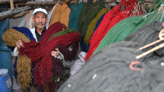 Aksaray'da, halı ve kilimlerin dokunduğu ipleri kök boya ile renklendiren 66 yaşındaki Ali İhsan Karaağaç, mesleğini yaklaşık yarım asırdır sürdürüyor.