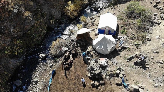 Zengin bitki örtüsü ve akarsu kaynaklarına sahip bölgede mayıs ayından bu yana 6 aydır çadırlarda zorlu yaşam süren göçer aile, küçükbaş hayvanlarını bölgedeki dağlarda otlatıyor.