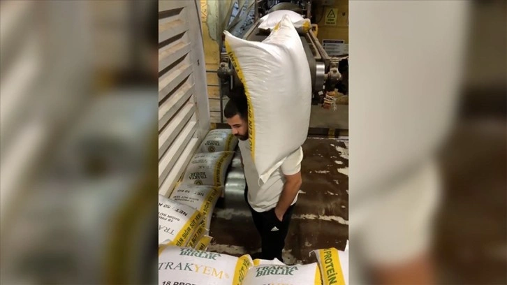Yük bandından gelen 50 kilogramlık yem çuvallarını elleri cebinde omzuna alıp istifleyen Acar'ın görüntüleri kısa sürede çok sayıda yorum, beğeni ve paylaşım aldı.