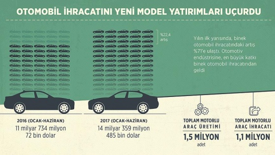 Otomotiv Endüstrisi İhracatçıları Birliği (OİB) Yönetim Kurulu Başkanı Orhan Sabuncu, AA muhabirine yaptığı açıklamada, ocak-haziran döneminde, geçen yılın aynı sürecine göre ihracatını yüzde 22,4 artışla 14 milyar 359 milyon 485 bin dolara yükselten otomotiv endüstrisine en büyük katkının binek otomobil ihracatından geldiğini belirtti.