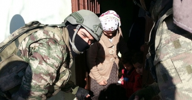 Güvenlik kuvvetlerinin bölge halkına yapılan yiyecek yardımına yönelik görüntüler paylaşıldı.
