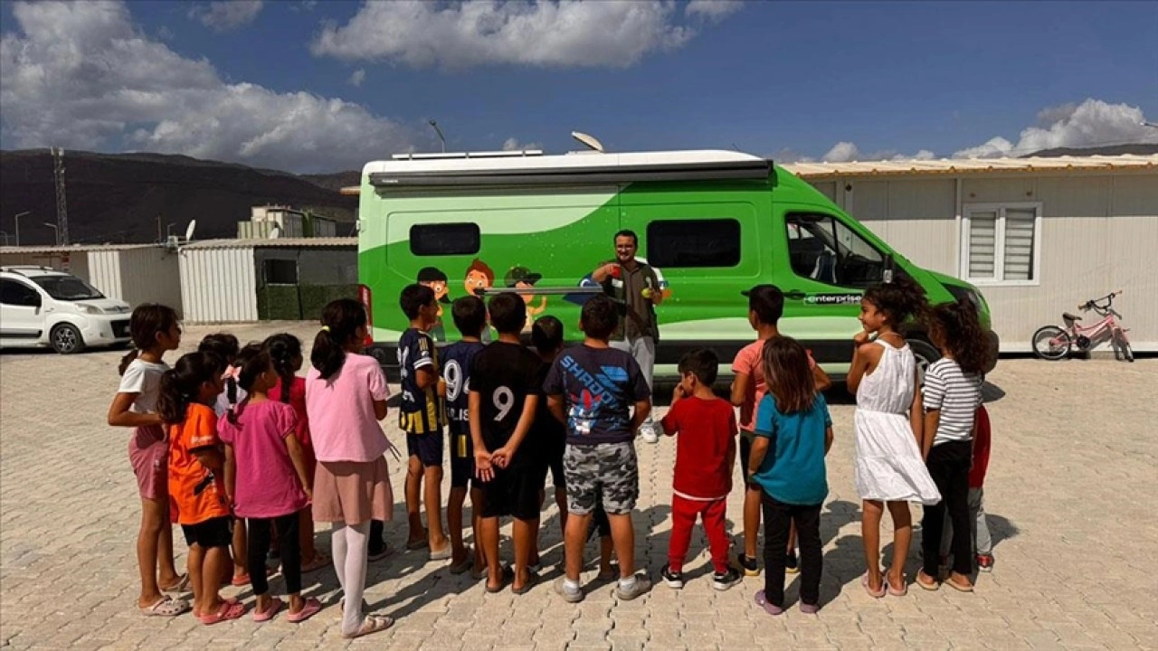 Karavanla haftanın üç günü konteyner kentlere giden ekipler, çocuklara yönelik boyama, el sanatı, zeka oyunları ve spor etkinlikleri düzenliyor.
