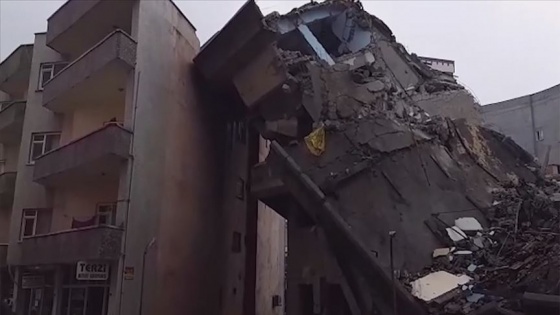 Bina, yıkım çalışmaları sırasında bitişikteki binanın üzerine devrildi.