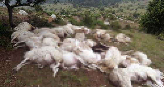 Yıldırım düştü, 73 koyun telef oldu