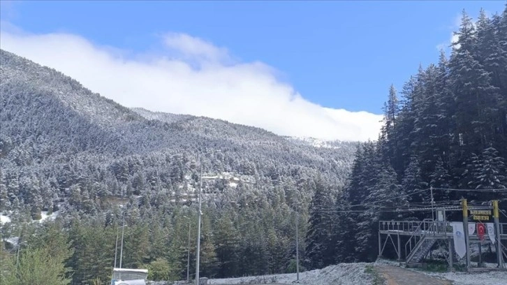 Hava sıcaklığının hissedilir derecede düştüğü ilçede, Yıldıztepe Kayak Merkezi ve Mülayim Yaylası mayıs ayında beyaz örtüyle kaplandı.