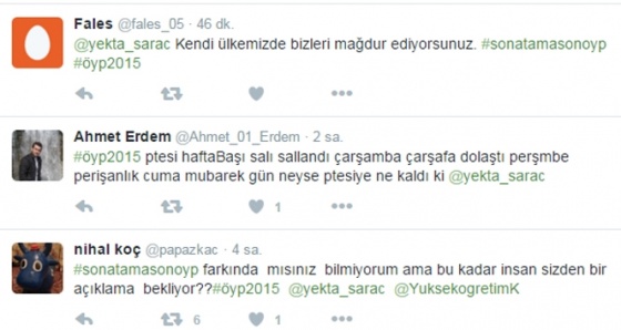 #sonatamasonoyp farkında mısınız bilmiyorum ama bu kadar insan sizden bir açıklama bekliyor??#öyp2015 @yekta_sarac @YuksekogretimK"