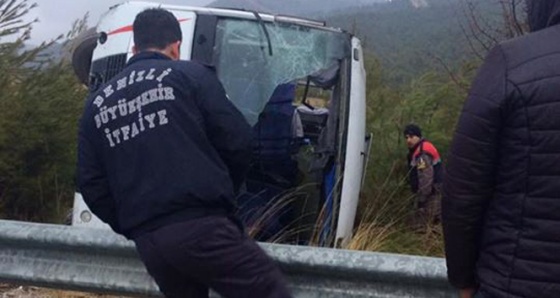 Denizli'nin Honaz ilçesinde yolcu minibüsünün devrilmesi sonucu meydana gelen trafik kazasında 1'i ağır 16 kişi yaralandı.